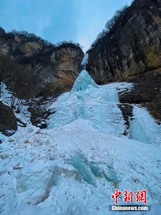 近日,立春后的陕西太平国家森林公园内落雪纷纷,秦岭山间冰瀑如玉柱,河道部分冰封,宛若“冰雪世界”。图为冰瀑景观。太平国家森林公园 供图