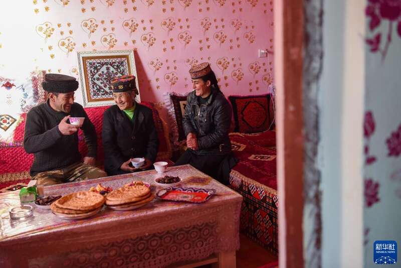 新疆塔什库尔干塔吉克自治县塔提库力易地扶贫搬迁安置点,村民在家中休息聊天(2022年12月20日摄)。新华社记者 丁磊 摄