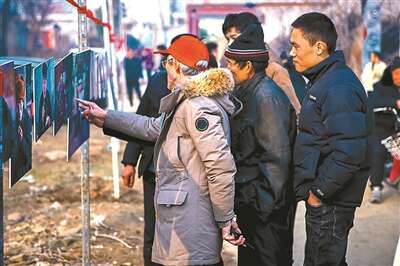 大年三十的傍晚,村口的小空场,从这棵树到那棵树之间连上红绳,到处都挂上了尺寸大大小小的照片,热热闹闹。