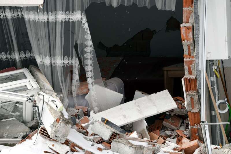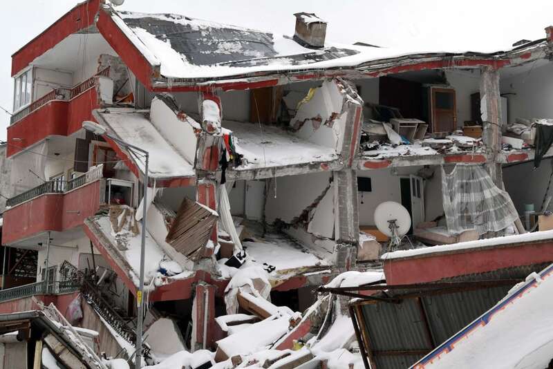 2月7日在埃尔比斯坦地区拍摄的地震中受损的建筑物。