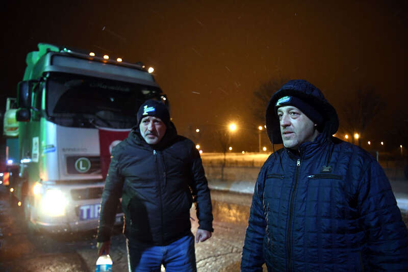 2月6日晚在伊斯坦布尔至安卡拉公路上拍摄的支援灾区人员。
