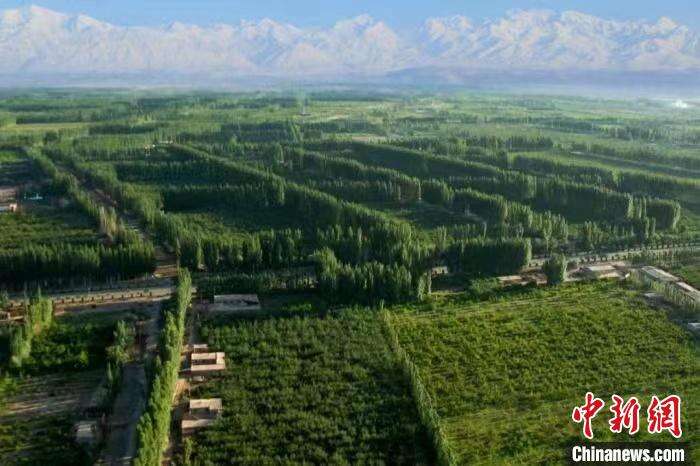 从“三北”防护林的防沙,到目前各类沙漠化治理方式的实施,新疆实现了从“沙进人退”到“绿进沙退”的转变。位于塔克拉玛干沙漠西北边缘的阿克苏地区,是新疆重点沙漠化地区,“20世纪80年代,这里每年都被沙尘肆虐,当地居民一年里有四分之一的时间在沙尘里度过。”阿克苏市柯柯牙纪念馆馆长宋兴年说。当时最近的沙漠距离城区仅有6公里,并且每年都在向城区逼近。面对恶劣的环境,1986年,阿克苏地区在风沙策源地柯柯牙启动绿化工程,用30多年的时间,在昔日的荒滩戈壁上建成了一条集生态林、经济林于一体的防风治沙“绿色长城”,被联合国环境资源保护委员会列为“全球500佳境”之一,创造了荒漠变林海、戈壁变果园的绿色奇迹。