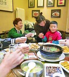 黑龙江哈尔滨市道里区一餐厅内,人们聚餐庆祝佳节。新华社发