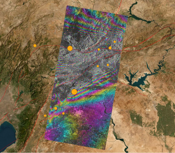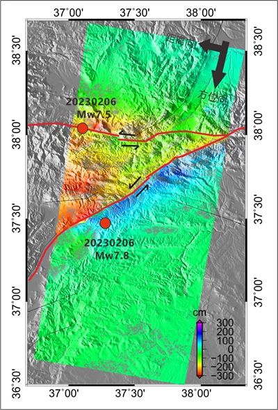 2月13日,澎湃新闻(www.thepaper.cn)记者从中国航天科技集团八院获悉,为了获取本次地震的同震形变场,科学掌握地震的破坏程度,为震后救援提供重要的数据支撑,国防科工局、自然资源部国土卫星遥感应用中心、应急管理部国家自然灾害防治研究院调用了由八院抓总研制的陆地探测一号01组卫星,于2023年2月10日获取了震后合成孔径雷达(SAR)图像,经过与震前SAR图像(2022年4月11日)进行差分干涉处理,得到了两次强震的同震形变场。