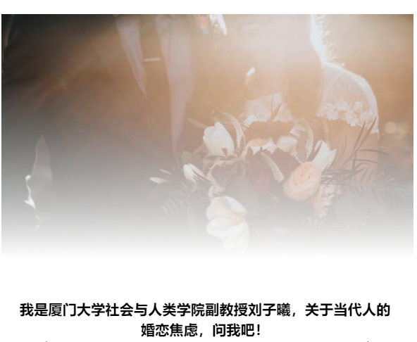 与持续走低的结婚率相对的,是年轻人愈发严重的婚恋焦虑。2023年开年,国内某知名婚恋平台发布了《2022~2023中国男女婚恋观报告——70后~00后“三观”洞察》。报告显示:“相亲平均年龄”在逐渐降低,从“70后”的男性人群26.4岁、女性人群25.4岁,降低至“00后”的男性20.6岁、女性20.2岁。许多单身年轻人正努力在交友软件、相亲聚会上试图高效寻找条件适配的伴侣。科技带来了更多元的交友手段,却加深了人们对亲密关系的不信任感。为何人们可以透过网络高效地结识陌生人,却很难发展长期深入的亲密关系?我们如何理解当代的婚恋焦虑,这些有关情感生活的烦恼与痛楚与当下的情感文化有何关系?澎湃问吧邀请厦门大学社会与人类学院副教授刘子曦,一起聊聊婚恋焦虑问题。
