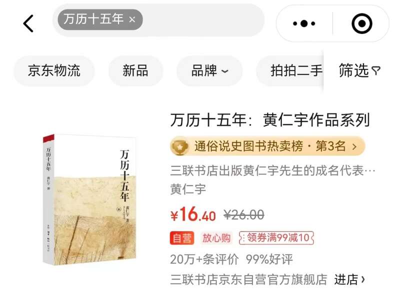 《万历十五年》位于京东通俗说史图书榜第三名
