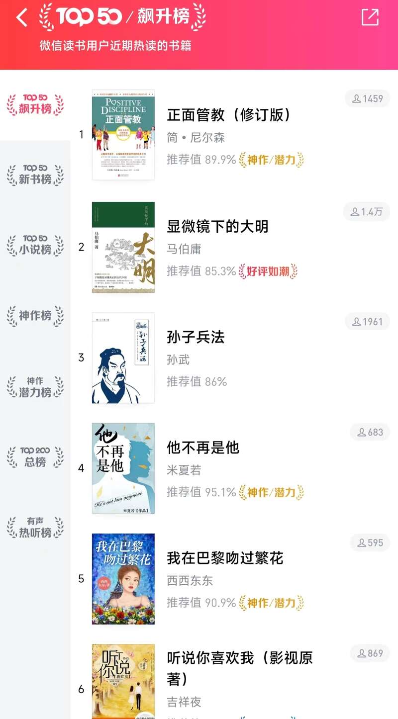 京东图书与微信读书的排行榜