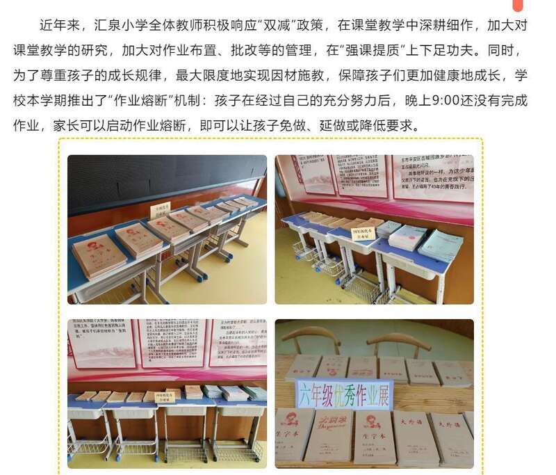 如阜阳清河小学2021年9月实施作业“超时熔断制度”,指不管是什么原因,不管是哪个学科的作业,只要超过晚上9点,或总用时超过60分钟,必须停止,并且不需要补做。