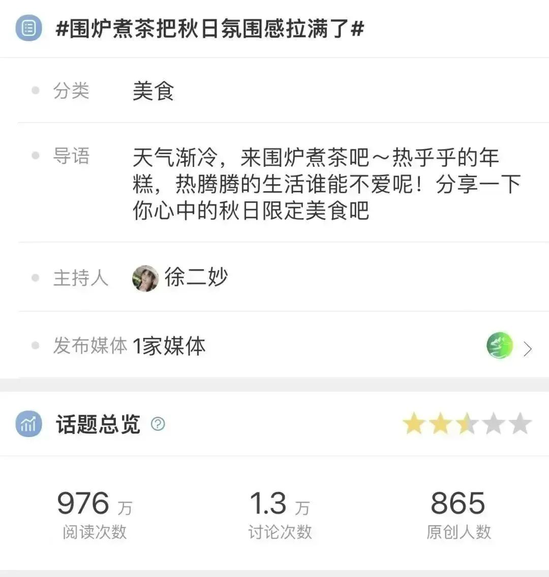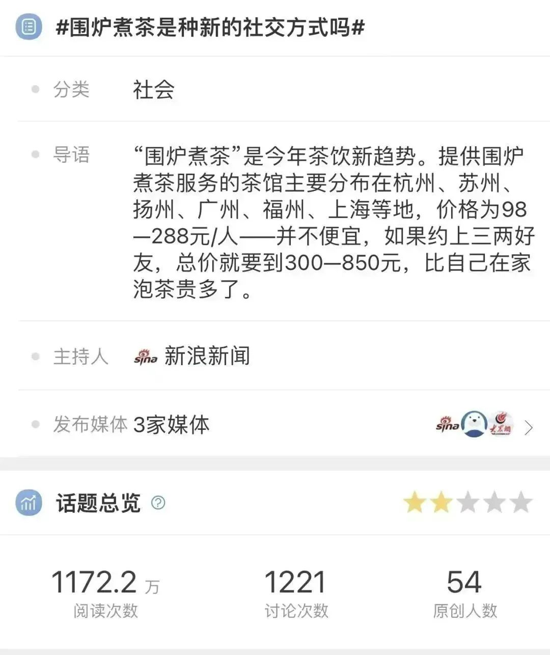 在微博上,#围炉煮茶把秋日氛围拉满了#和#围炉煮茶是种新的社交方式吗#的话题也被网友们不断热议。