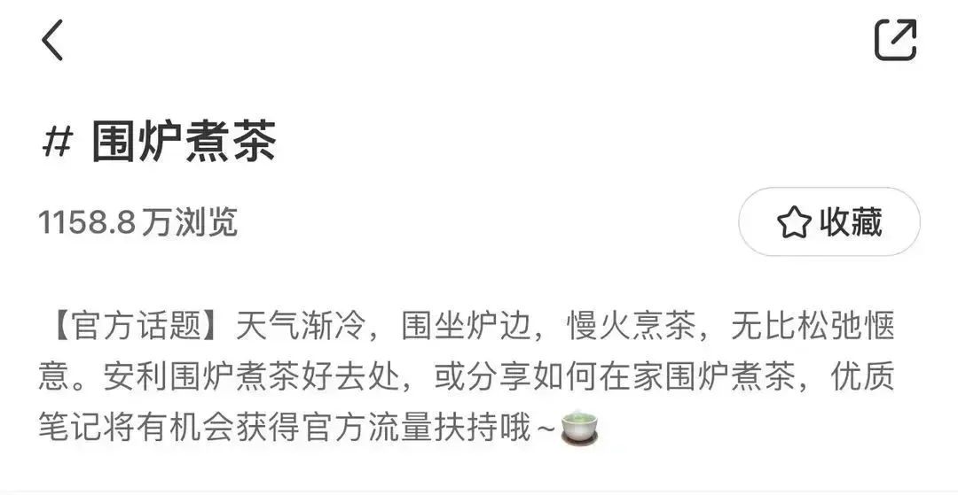 在小红书上,围炉煮茶官方话题获1158.8万次的浏览,相关笔记超19万篇。