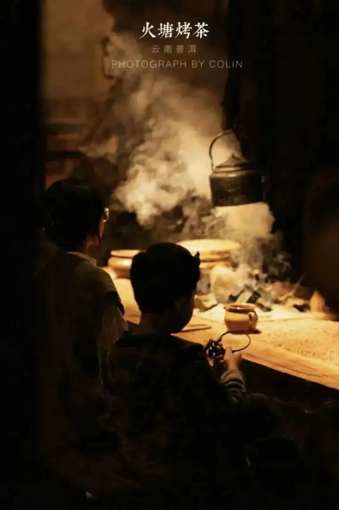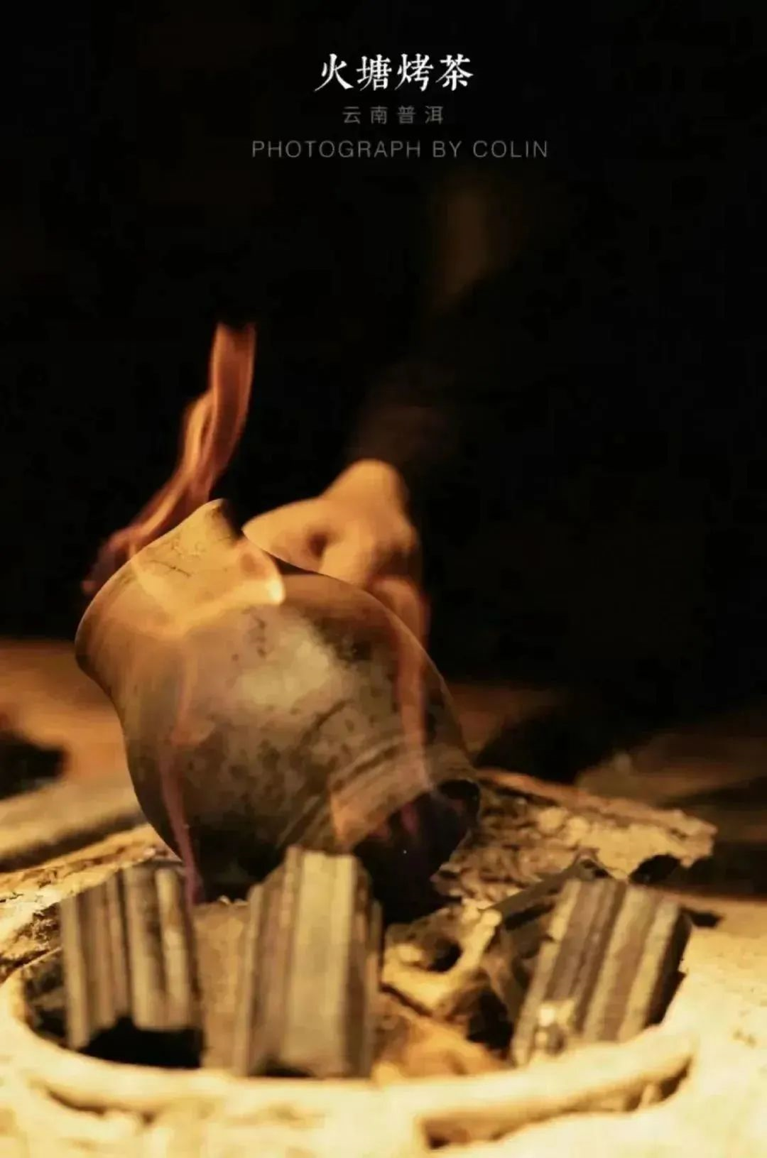 “火塘”,是在室内用火碳烧水或煮饭的一种火坑。在当地,每当客人到家时,主人就会一边烧水,一边将土陶烤茶壶放到火塘上慢火烘烤。当茶壶达到一定火候时放入茶叶,边烤边摇动,让茶叶在茶壶里翻腾,等茶叶散发出醇厚的焦香味时,便开始沏茶。
