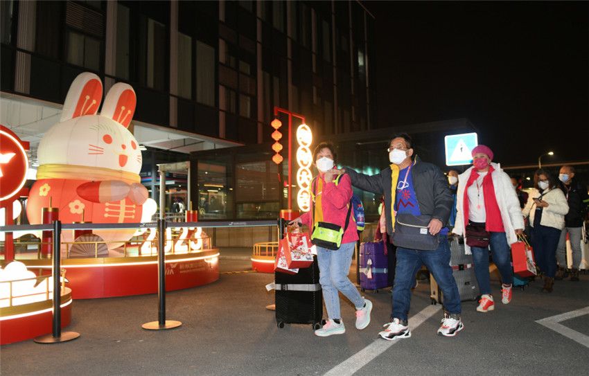 2023年2月15日,杭州,18名香港游客抵达萧山国际机场。