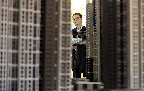 湖北省武汉市一名看房者在观看楼盘模型。新华社记者 程敏 摄