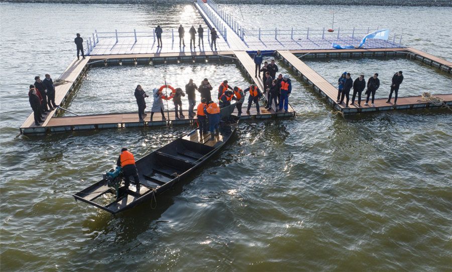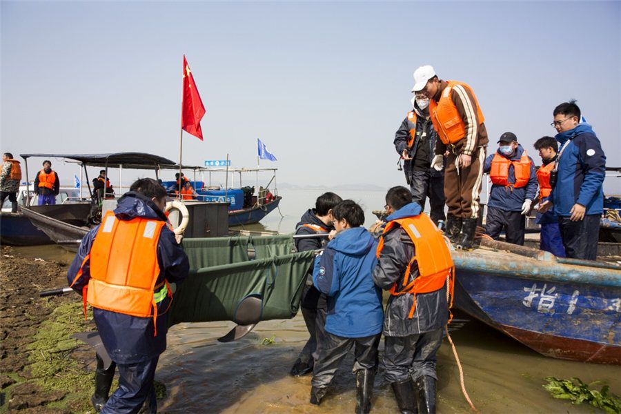 2023年2月14日-15日,江西九江,长江江豚迁地保护计划2023年迁地保护项目在鄱阳湖启动,作为中国最大的长江江豚种质资源库,这也是鄱阳湖江豚第五次外迁。