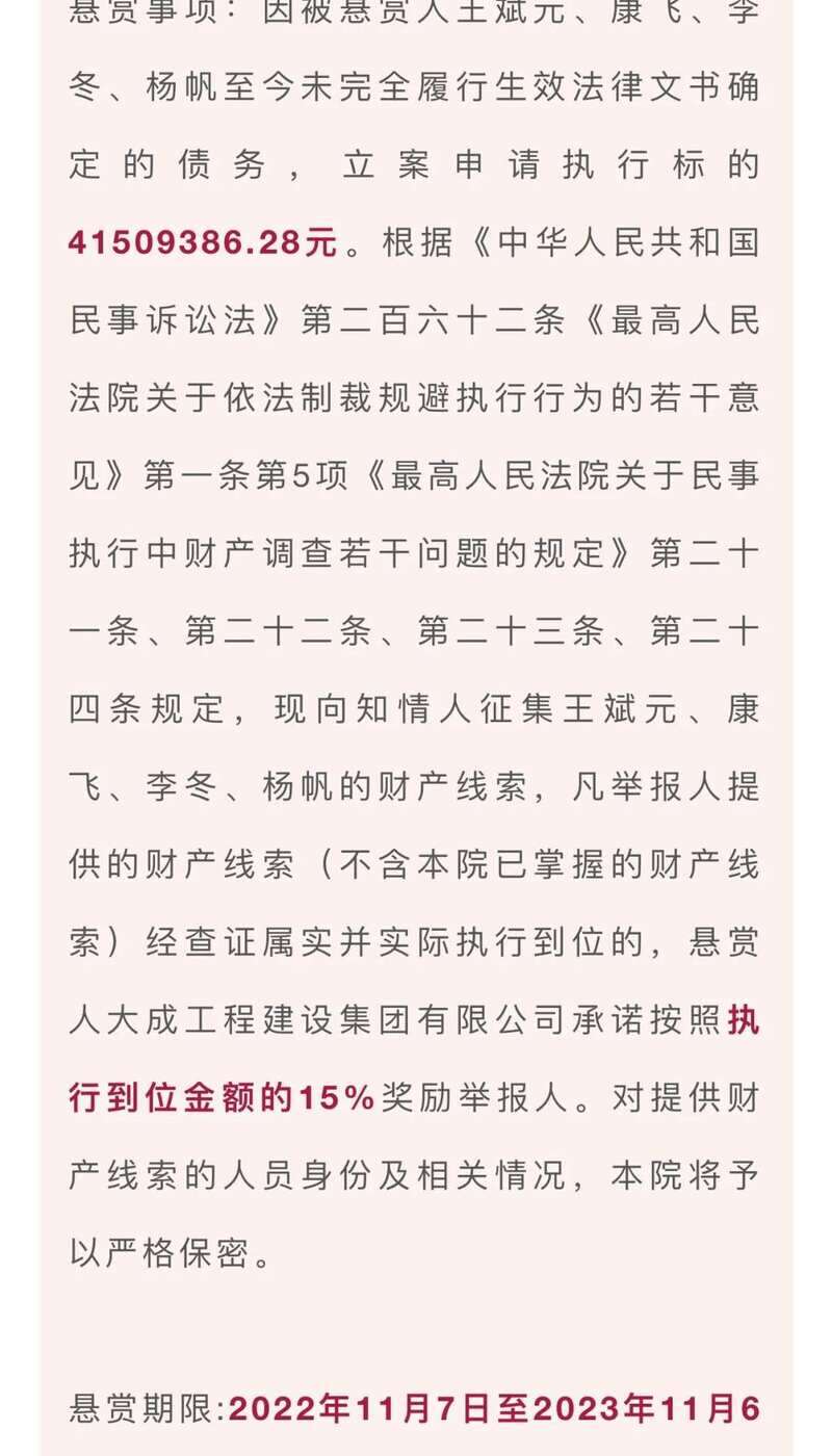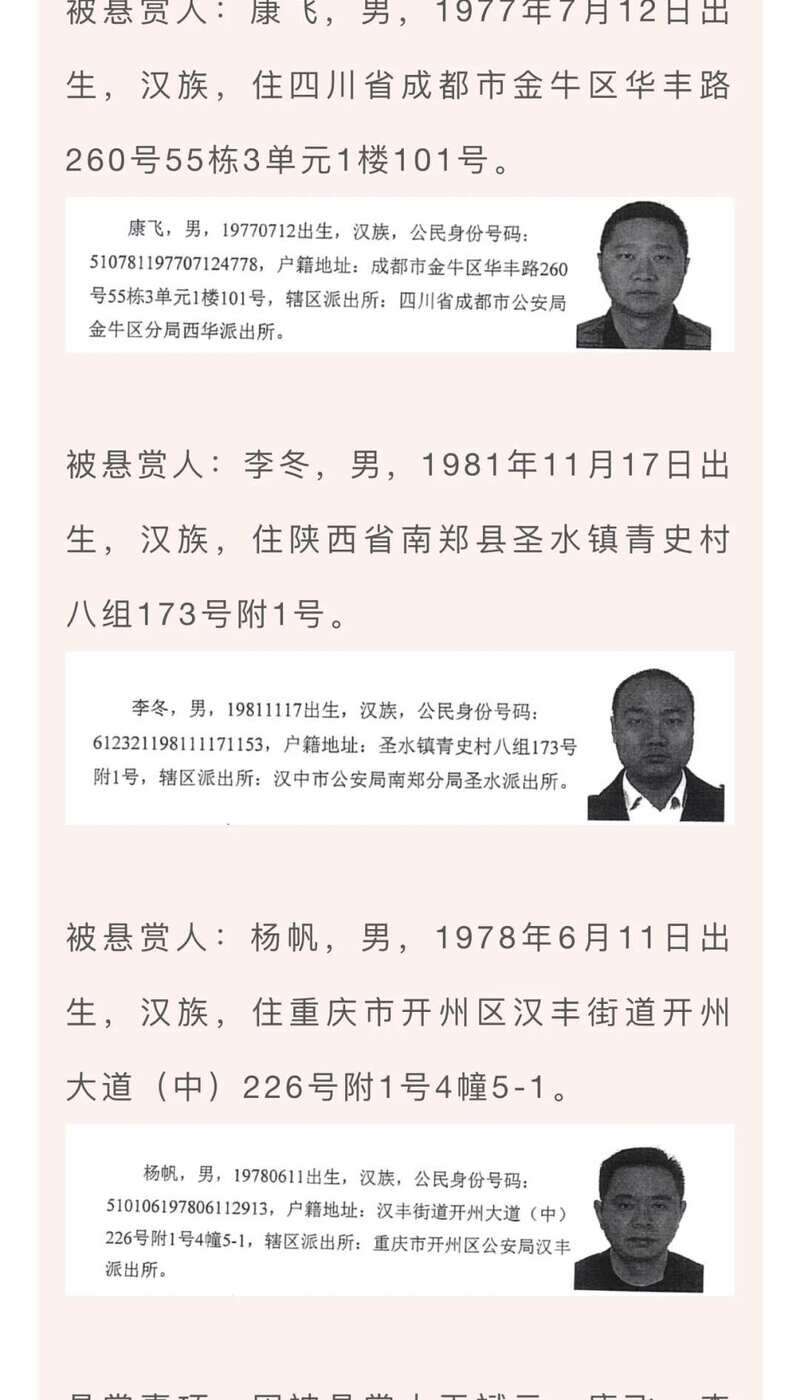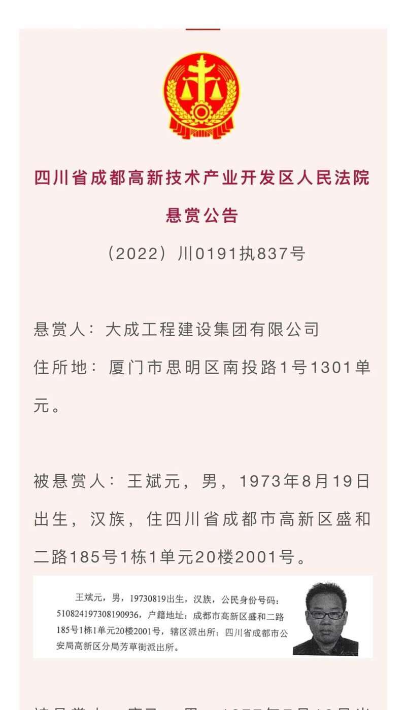 2月17日,成都高新法院发布悬赏公告,最高奖百万。看到这4个人请立即举报。