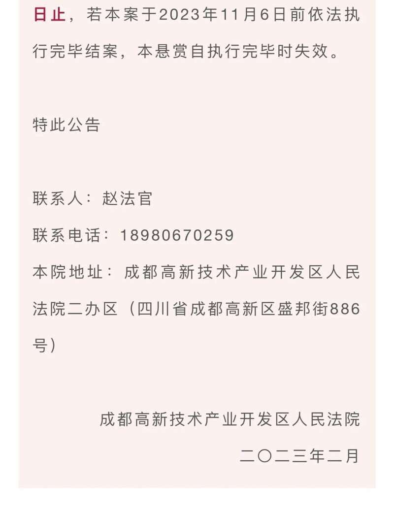 成都高新法院微信公号 | 2023-02-18