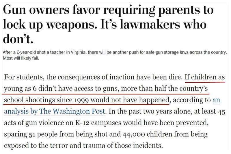 《华盛顿邮报》记者约翰·考克斯调查发现,美国发生的校园枪击事件中,有80%都是因为孩子从家里很容易地拿到了枪支。