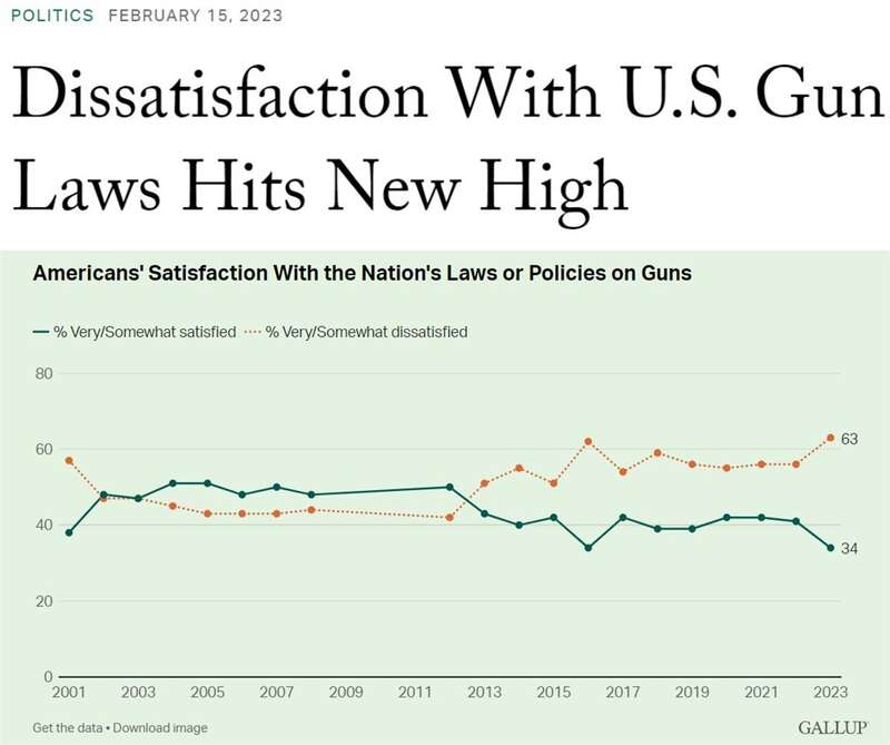 盖洛普公司日前发布的最新民调结果显示,在美国,对本国现行枪支管控法律及政策不满的民众占比达63%,较一年前增加7%,创下盖洛普2001年开始此项民调以来最高水平。