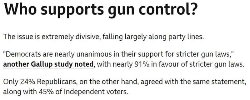 “我们从过去30年的民意调查中可以了解到,包括一些保守派和枪支拥有者在内的大多数美国人都希望更有效地管制枪支……但多年来,美国两党政治下的控枪僵局一直无法打破,一个重要原因就是枪支游说团体的四处奔走。”