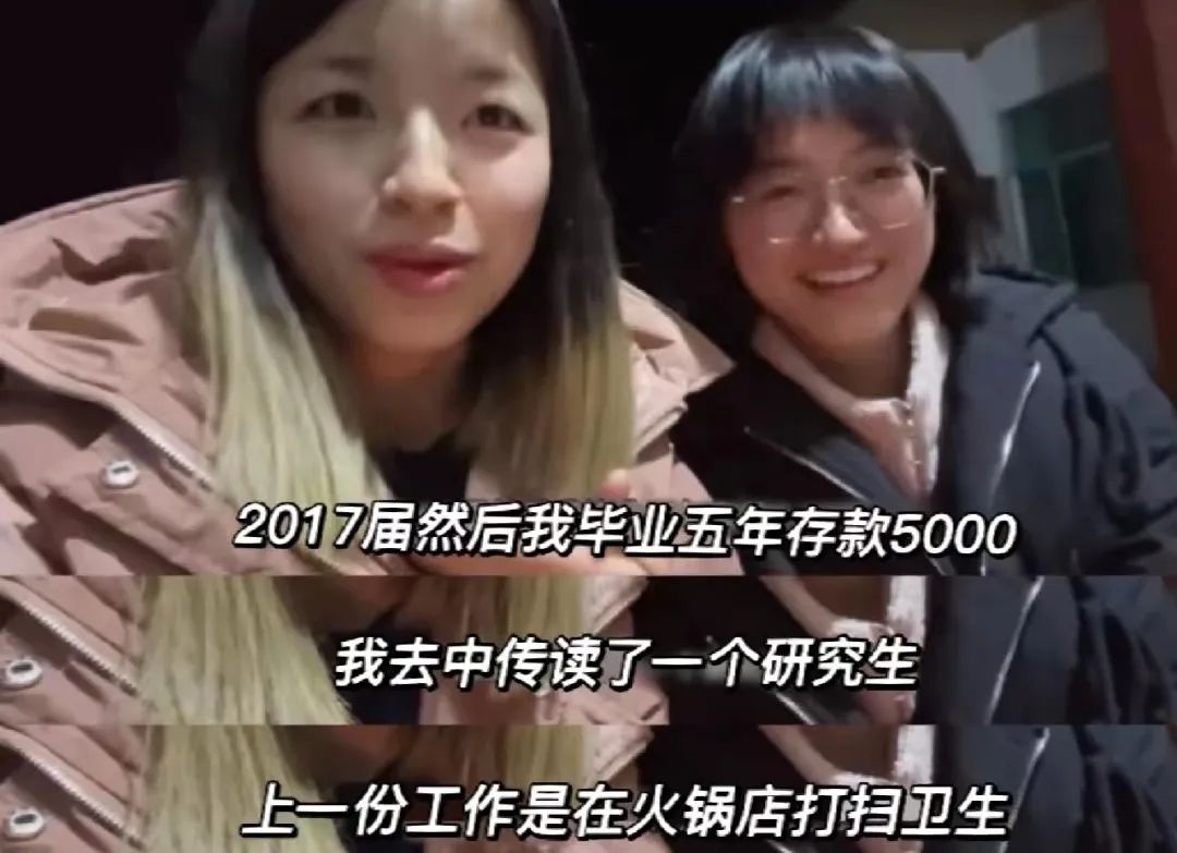 偶然的一天,我正翻看着b站推荐,一个标题为《我:毕业5年,存款5000 她:中传硕士,火锅店保洁》的视频引起了我的注意。
