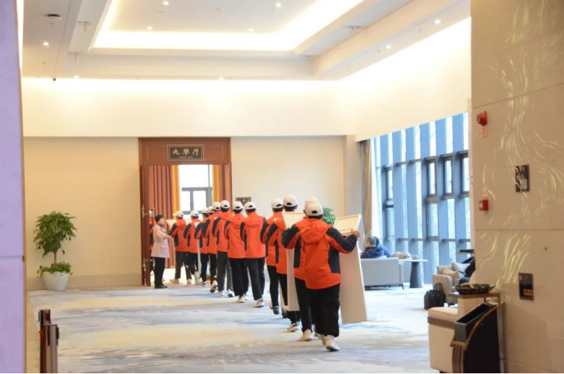 会场内外处处能看到志愿者们辛勤工作的身影,外场志愿者们主要负责报到处、服务台相关会务引导和协助工作,场内主要负责签约仪式的道具调度。