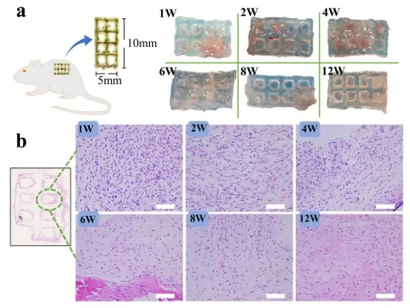 该研究探索了DLP 打印IVCF的临床可行性。形状记忆IVCF可通过输送鞘管进行微创部署,并在温水刺激下恢复到初始设计的过滤器形状,完全捕获直径5mm以上的血栓。此外,生物降解的结果表明,SMP在降解的同时,可以在体内执行至少12周的移植物功能。