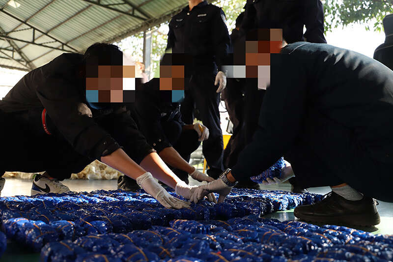 1月21日除夕当天,该支队木康边境检查站执勤民警在开展公开查缉时,从一辆瑞丽驶往内地的大货车的货物夹层内查获用白色胶带包裹的毒品可疑物100条,后经称量重约93公斤,2名驾驶员被当场抓获。