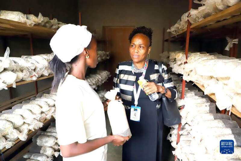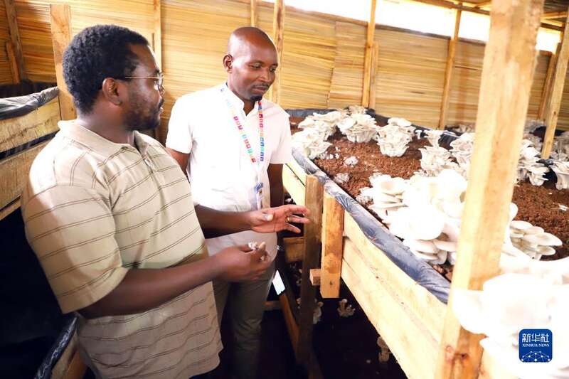 2月21日,参会者在卢旺达首都基加利的一座菌菇农场参观。新华社发(黄万晴摄)