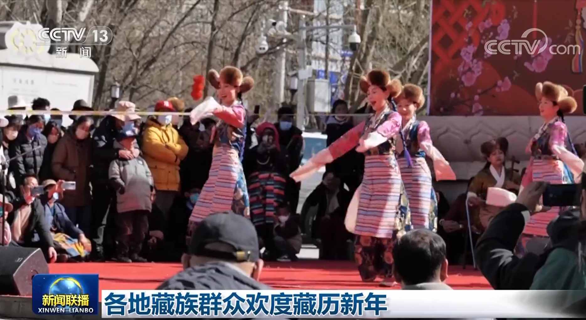央视网消息(新闻联播):今天(2月21日)是藏历水兔新年,各地藏族群众身着节日盛装,跳锅庄、品美食,喜迎新年。
