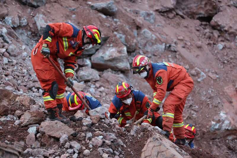2月23日,中青报·中青网记者抵达核心救援区,看到挖掘机在不停地挖掘土石,现场坍塌面积很大。据救援人员介绍,通过生命探测仪、搜救犬搜寻到被困人员所在位置后,救援人员再用挖土镐,甚至徒手挖掘。