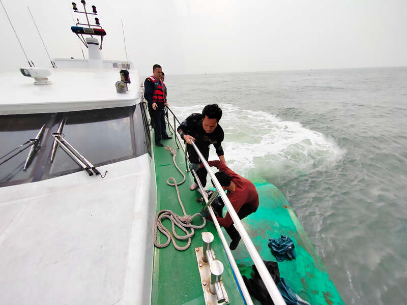 2名遇险人员被“中国海监1120”船救起。 防城港市海上搜救中心供图