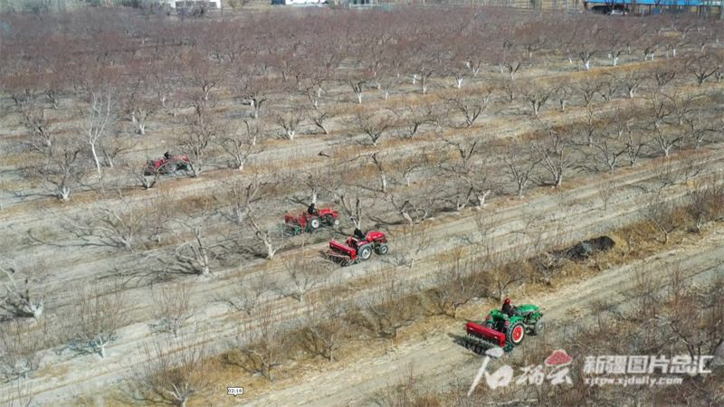 2月22日,在轮台县阳霞镇其盖布拉克村的杏园里,伴随着一阵阵机械的轰鸣声,油菜种子被均匀地播撒到杏树间。该县林业和草原局正在这里组织召开全县果园套种油菜种植现场会,技术人员在现场讲述杏树底下套种油菜的好处,手把手地教农民播种和播后管理的技术要点。