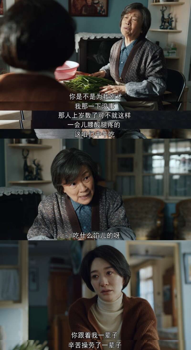 由此,《我们的日子》中的父辈反而会让不少观众觉得“熟悉”,他们就是我们身边又怨又爱,有些时候想要离得远远的、最终又不离不弃的父辈。非常典型的是刘淑霞的母亲、王雪花的姥姥那人和(宋春丽 饰),她是非常典型的中国式妈妈、中国式姥姥,也一再勾起笔者对家中一些长辈的记忆。