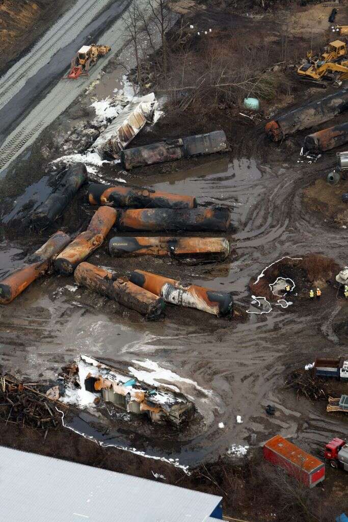 美国俄亥俄州“毒火车”脱轨事故现场(资料图)