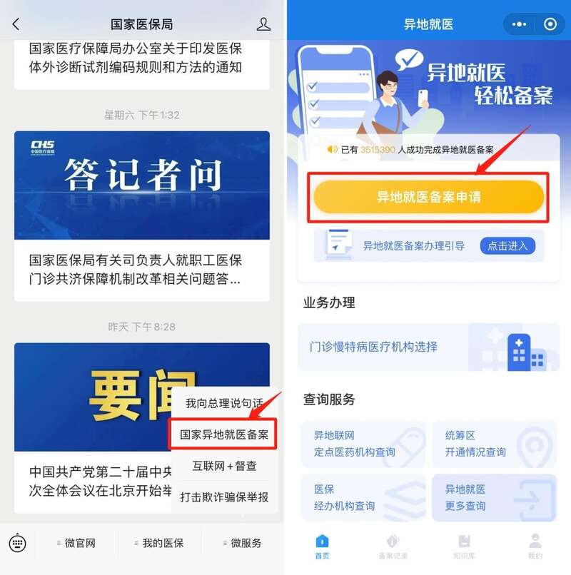 为了给参保人提供更为便捷的服务,国家医保局微信公众号目前已开通异地就医备案办理功能。符合条件的参保人只需简单几步操作,即可完成跨省异地就医备案,并在异地就医时实现直接结算。