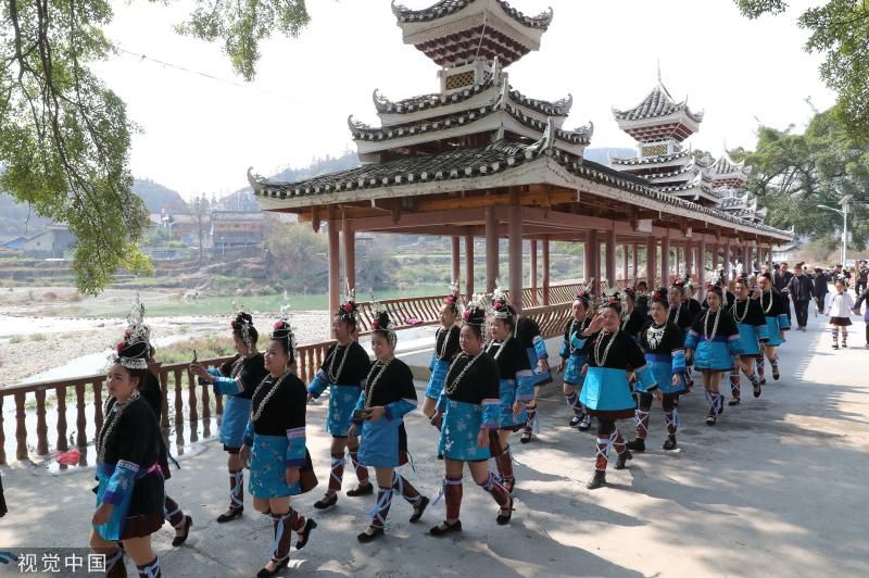 2023年2月26日,贵州省黔东南苗族侗族自治州,侗族同胞在榕江县忠诚镇乐乡村欢乐旅游节为游客演唱侗族大歌。
