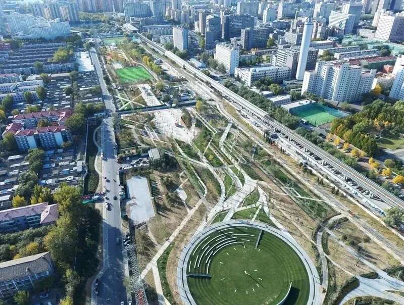 北京北林地景园林规划设计院副院长张璐介绍,公园充分体现了“历史传承、开放共享、凸显科创、集约利用、绿色生态”五大特点,打造可看、可用、可玩的城市公园。园内利用沿线旧铁轨、道岔、机车等铁路元素,设置火车声响互动装置、火车转盘景观,传承与展示铁路文化,彰显铁路文化特色;创新设计了在铁轨上移动、自由组合的“移动盒子”,补充公园配套服务,为周边科创企业提供展览展示平台;此外,互动喷泉、智慧健身设施、智慧管理平台等设施也加入公园中。