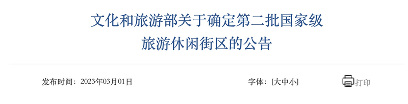 根据中华人民共和国旅游行业标准《旅游休闲街区等级划分》(LB/T 082-2021),经有关省(区、市)文化和旅游行政部门推荐,文化和旅游部按程序组织认定并完成公示,确定以下单位为第二批国家级旅游休闲街区: