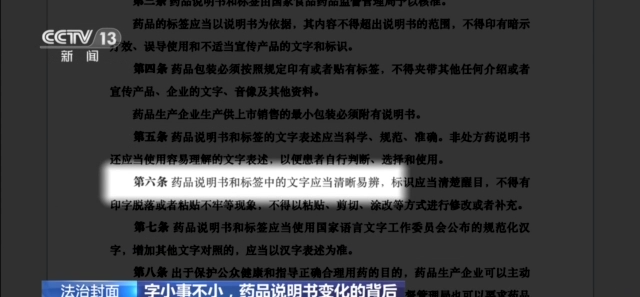 连云港市海州区人民检察院检察官 胡方:因为药品管理法对字体和字号没有一个特别清晰的规定,它就是明确要做到清晰易辨,其实这个主动权是在药企生产环节的。