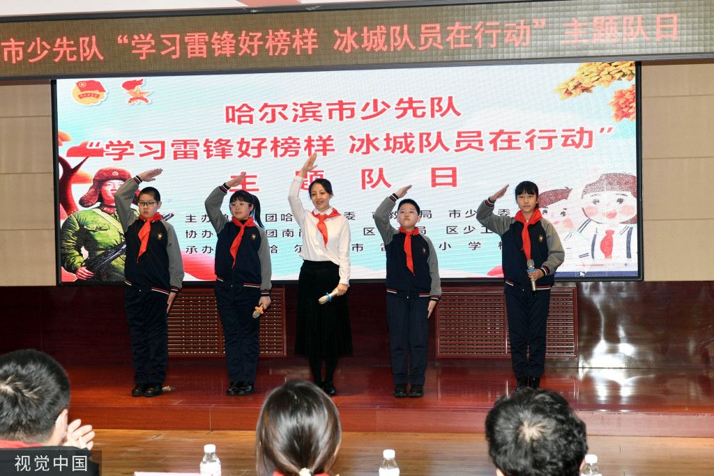 2023年3月3日,哈尔滨,雷锋小学举办哈尔滨市少先队“学习雷锋好榜样 冰城队员在行动”主题队日活动。