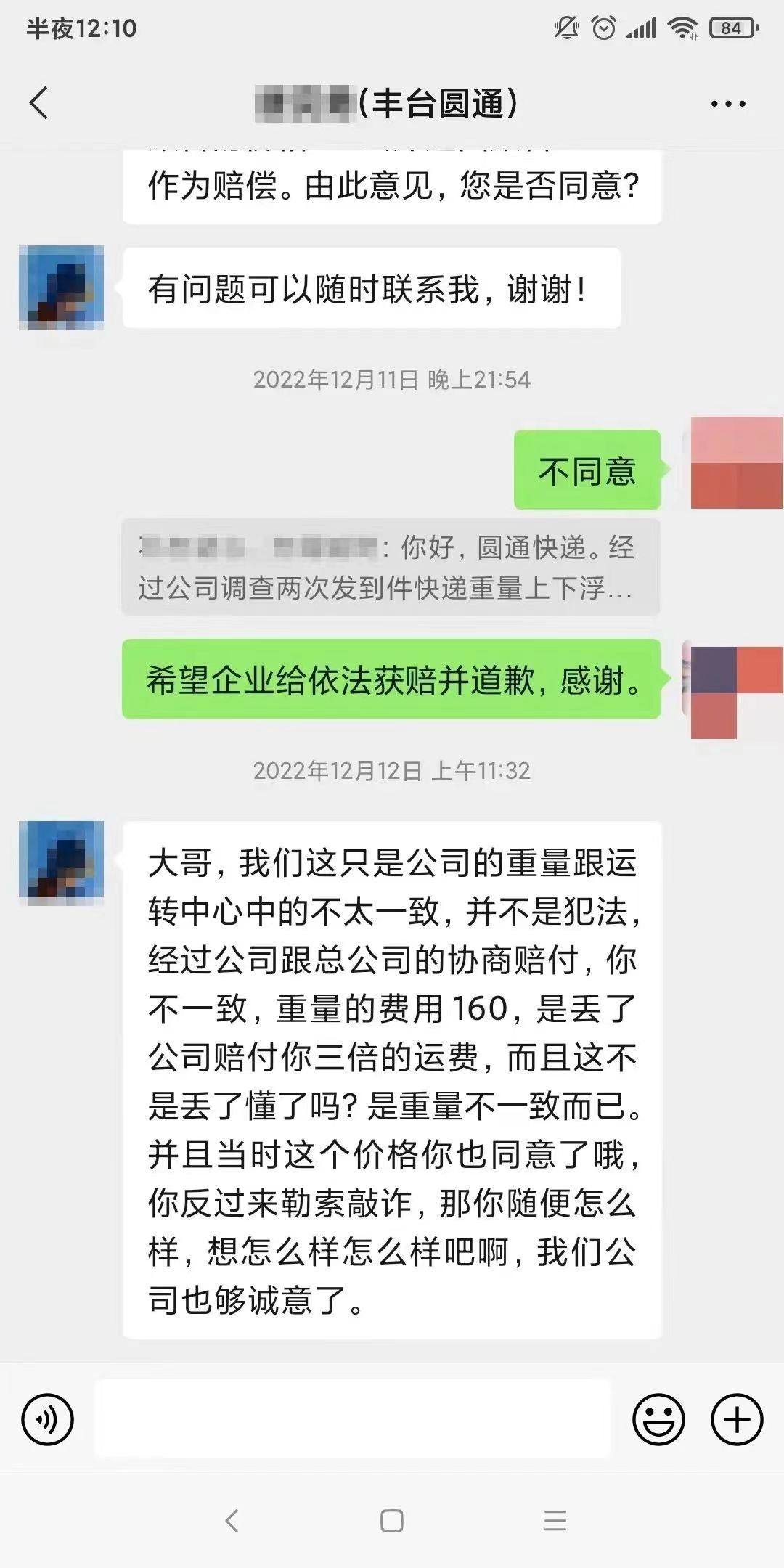 前述圆通速递相关负责人表示,涉事快递点已同意“退一赔三”和2000元包裹耽误使用费补偿方案。