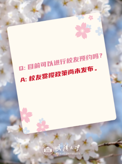 武汉大学称:武大是重要的教学、科研和人才培养场所,校园同一时间段承载能力有限,樱花开放期间不得不有限预约开放,相关政策将会于近期发布。