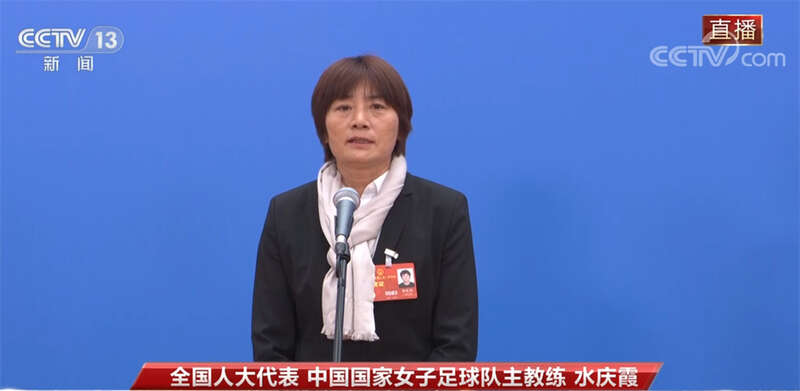 全国人大代表 中国国家女子足球队主教练 水庆霞:大家好!我是水庆霞,前中国国家女子足球队队员,退役后从事教练员工作,现任中国国家女子足球队主教练,今年当选十四届全国人大代表。2022年,我带领中国国家女子足球队,时隔十六年重夺亚洲杯冠军。