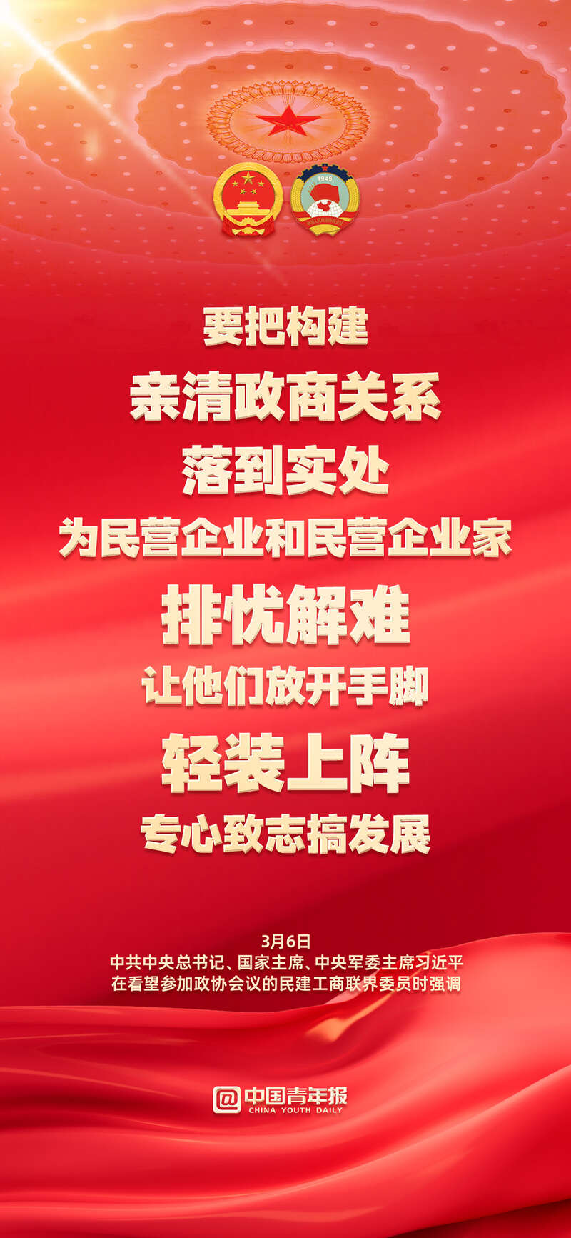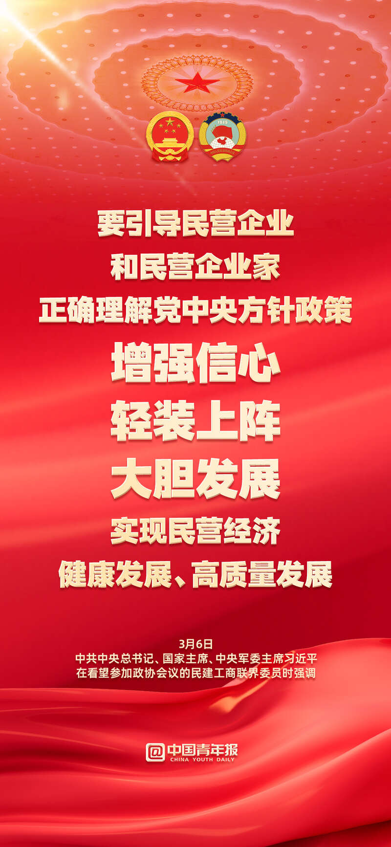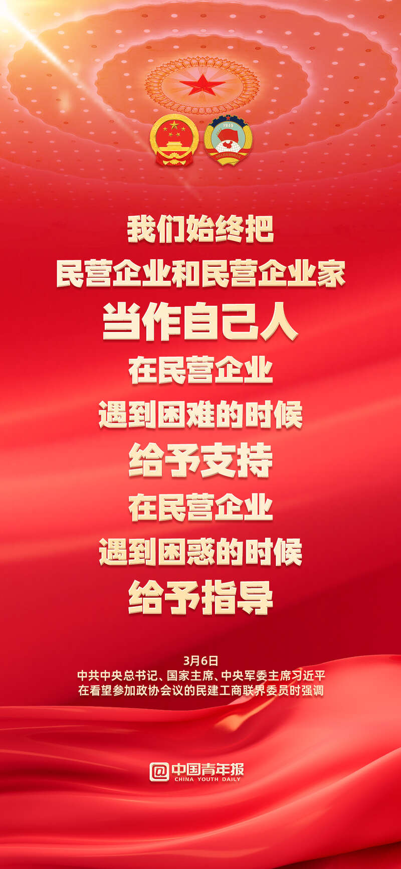“始终把民营企业和民营企业家当作自己人”;“无论是国有企业还是民营企业,都是促进共同富裕的重要力量,都必须担负促进共同富裕的社会责任。”3月6日下午,习近平总书记在看望参加政协会议的民建工商联界委员时强调,要正确引导民营经济健康发展高质量发展。关于民营企业和民营企业家,总书记作出哪些重要论述,转存金句,共同学习⬇