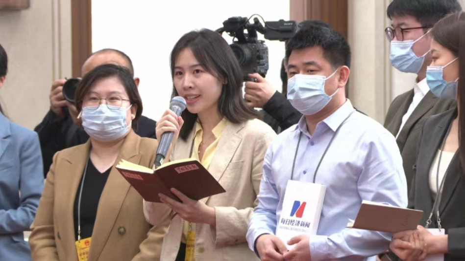 中青报·中青网记者张艺在“部长通道”上向住房和城乡建设部部长倪虹提问。 央视直播截图