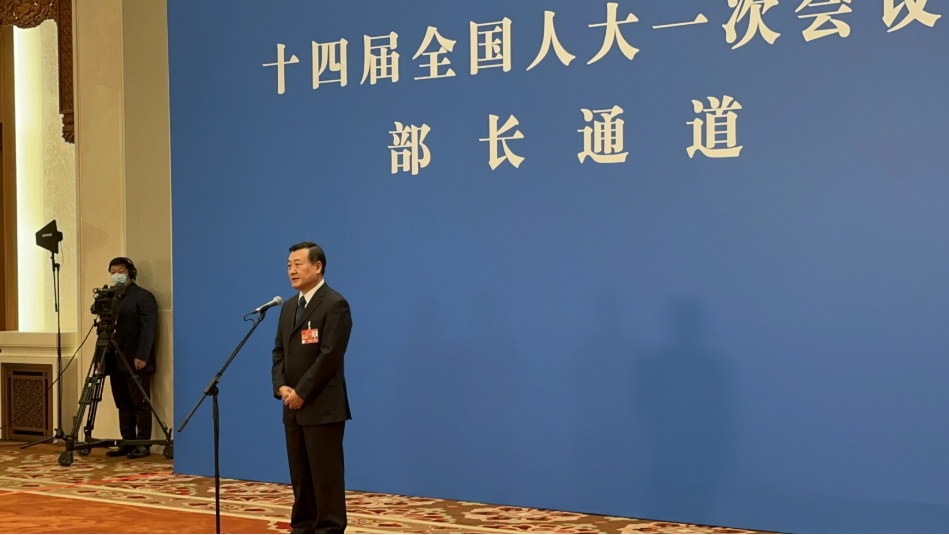 住房和城乡建设部部长倪虹在“部长通道”上回答中青报·中青网记者关于如何稳住房地产市场的提问。 中青报·中青网记者 贺瑶/摄