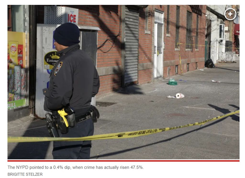 中国日报网3月7日电 据《纽约邮报》5日报道,纽约市的犯罪率高居不下,目前已上升了47.5%。尽管“铁证如山”,当地警方却一再否认称,事实并非如此。
