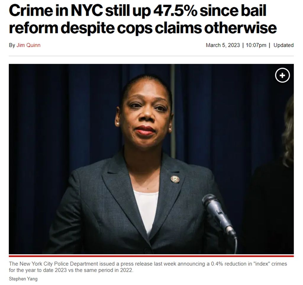 作者认为,0.4%的下降数据最糟糕的部分是,它给了“改革”倡导者和立法者另一个误导性的话题,即对犯罪的恐惧是非理性的。他们会说,犯罪率正在下降。而严峻的现实是,立法者已经认为纽约街道上犯罪率的增加是他们的刑事司法改革可以接受的代价。然而,他们不能也不会公开承认这一点。