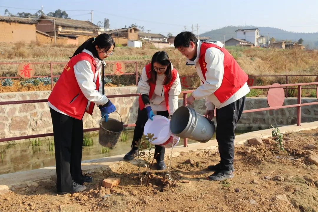 投身实践,守护绿水青山。在云南牟定县牌坊村的田间地头,研支团志愿者们积极参加当地学雷锋活动,开展浇水护绿、进行施肥掩土,以劳动奉献助力“绿美乡村”。身处湖北的宣恩分队则开展了以“传承雷锋精神,守护绿水青山”为主题的环保志愿活动,在社会实践中感悟志愿精神。