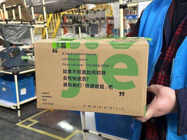 三八妇女节当天,天猫超市上线“姐姐”快递箱,在箱子上印有“如果你见到送货上门的女性快递员,请叫她快递姐姐”的呼吁,首批1000万个箱子,覆盖北京、上海、杭州等10个城市。此外,随着快递箱内还有“快递姐姐”故事明信片,首批投放18万张。相关负责人表示,通过快递箱、明信片的流转,希望更多人能够关注到如何称呼女性快递员的问题。
